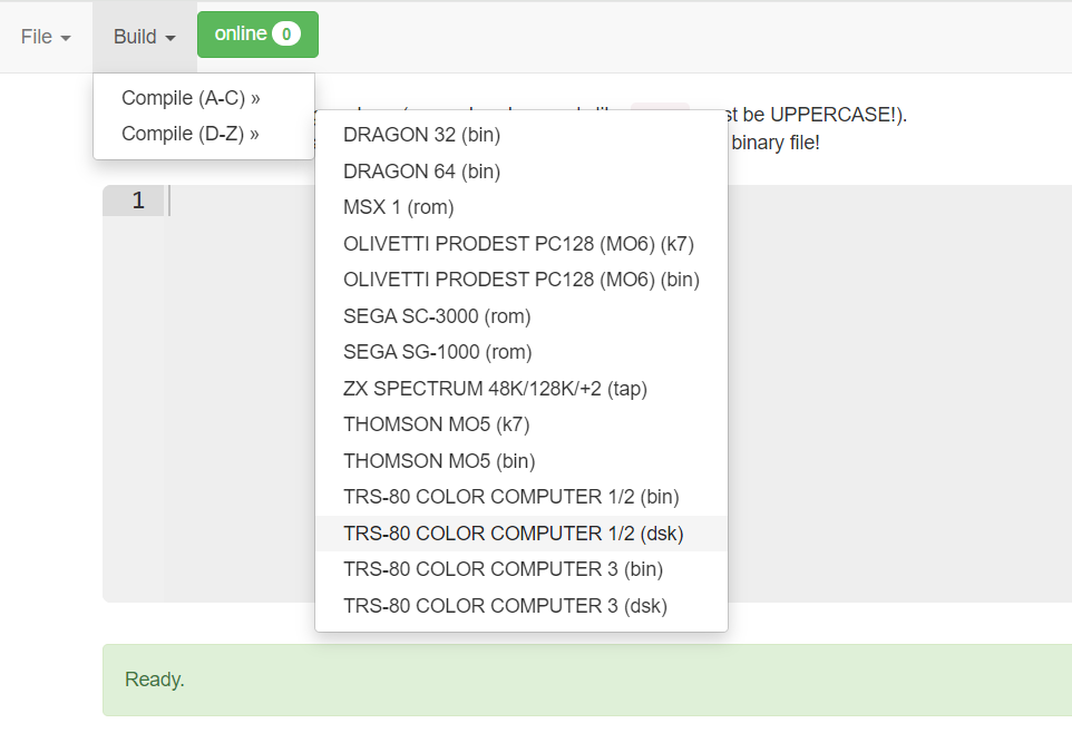 The ugBASIC compiler supports both the TRS-80 Color Computer 1/2 PAL